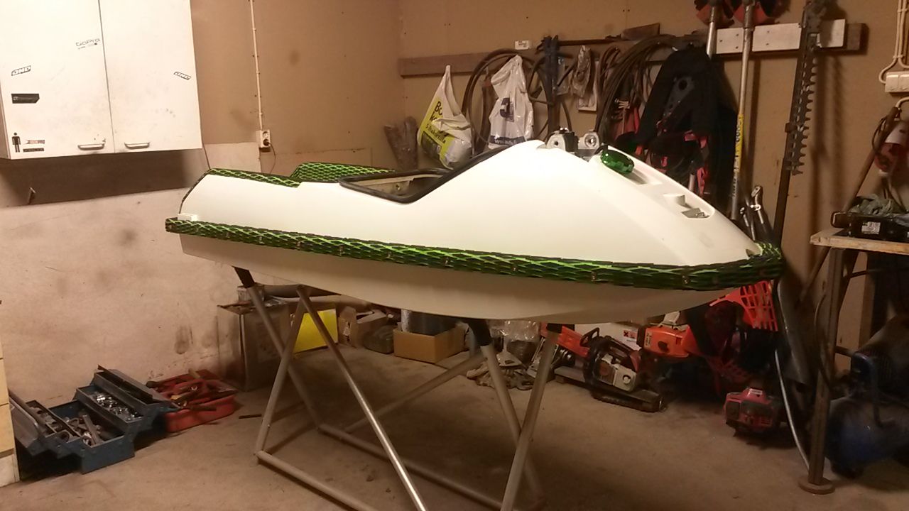 Ensimmäinen projekti oli valmistaa jetille korkeampi pukki. Yksi ilta, nippu alumiiniputkea, pussillinen suunnittelujuomaa ja vähän mielikuvitusta niin johan alko syntymään.