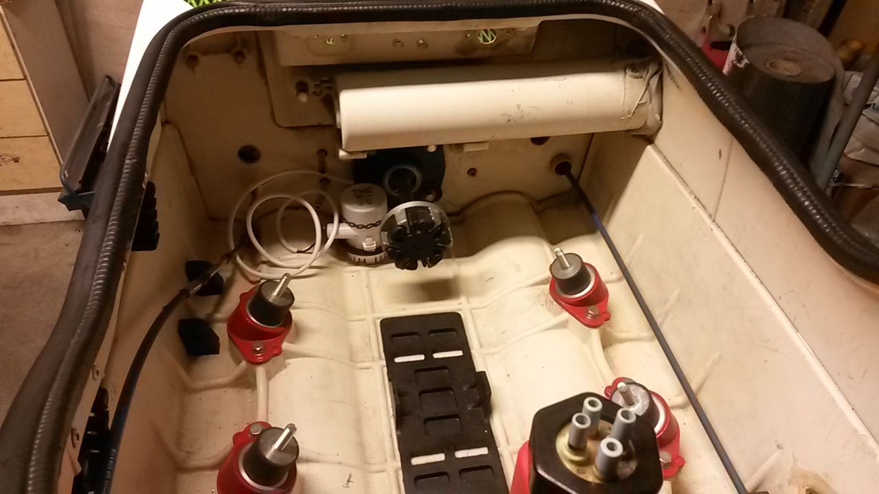 Konehuone näyttää tällähetkellä tältä. Tankki on vedetty Plasti dipillä, aika näyttää miten kestää.