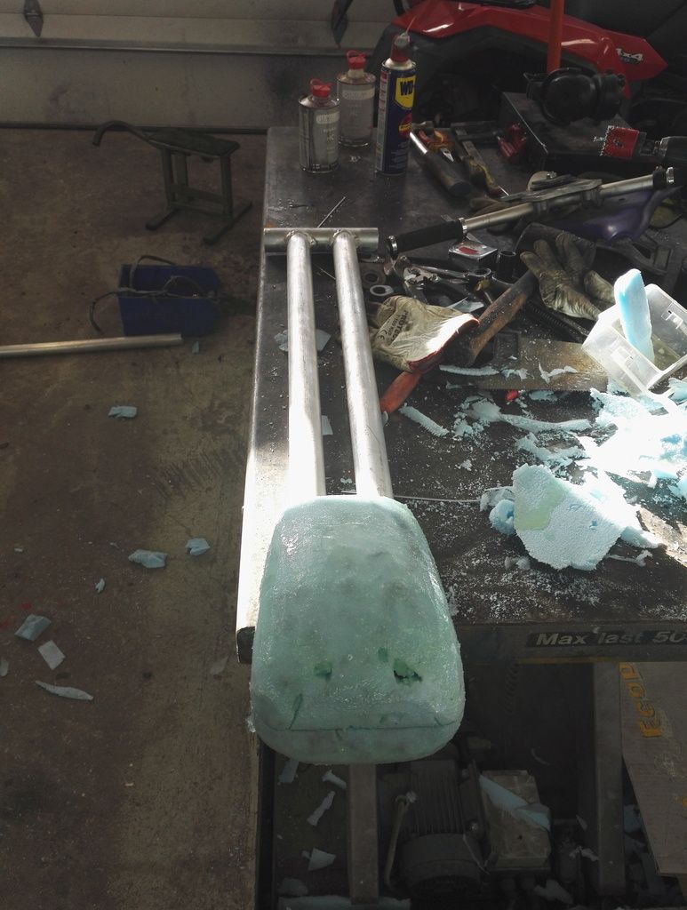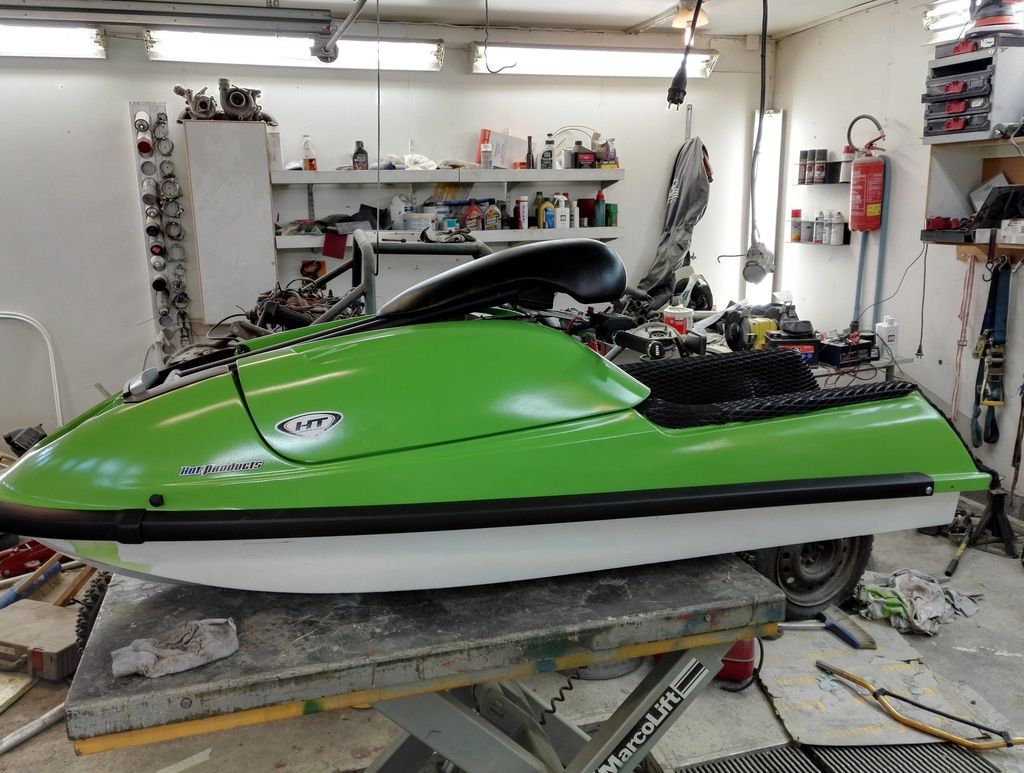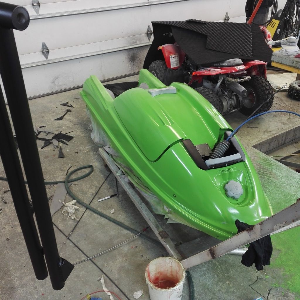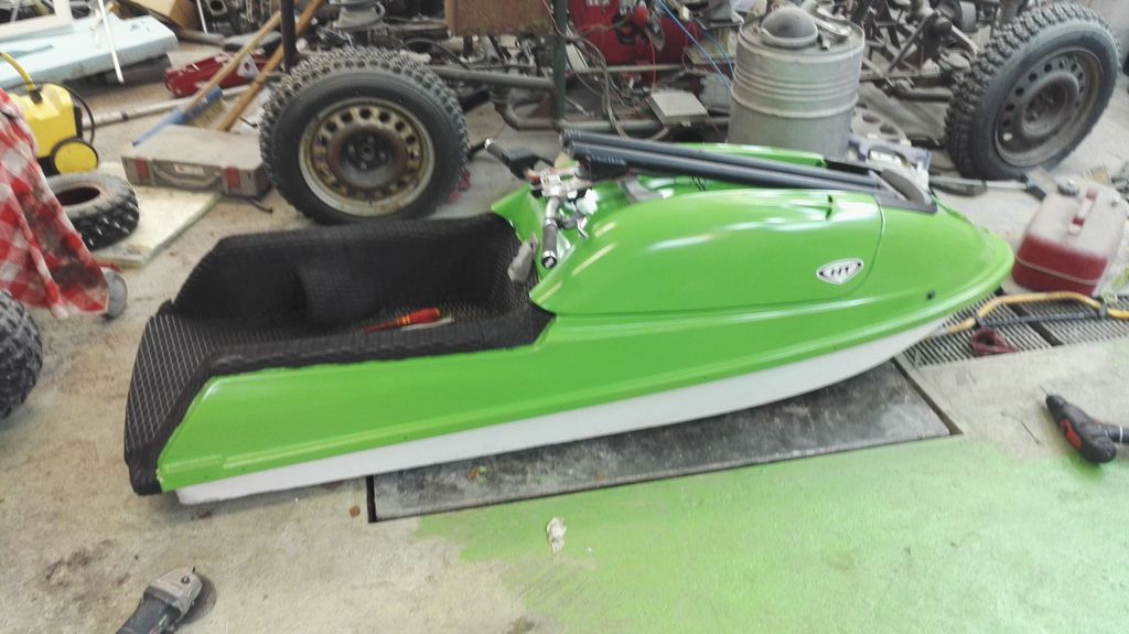 Tarkoituksena oli maalata komeus uudelleen kawasakin vihreällä ja matot mustaa salmiakki hydroturffia. Myös uuden lyhyemmän puomin tein alumiinista.