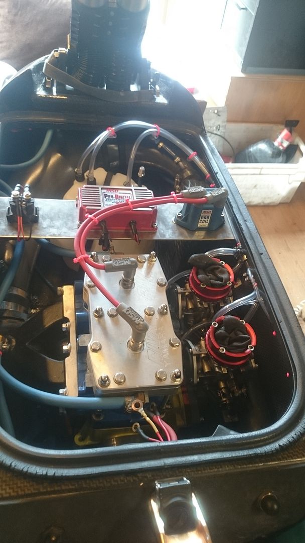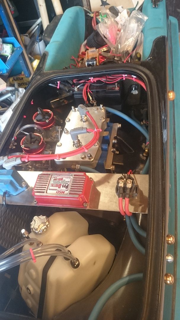Pientä ongelmien ratkontaa joutui harrastamaan kun akun paikka muuttui dramaattisesti, normipaikalla on powerfactorin vesiboksi ja seuraavana paikkana suunnitelmissa ollut vasen takanurkka taas haluaa viedä trimmi kaapelin läpi rungosta. Ratkaisuna siis se että akku tulee siihen missä normaalisti on sähköt. Toi on hyvä paikka, helppo lataa akkua ja siinä sen painokin on takana.