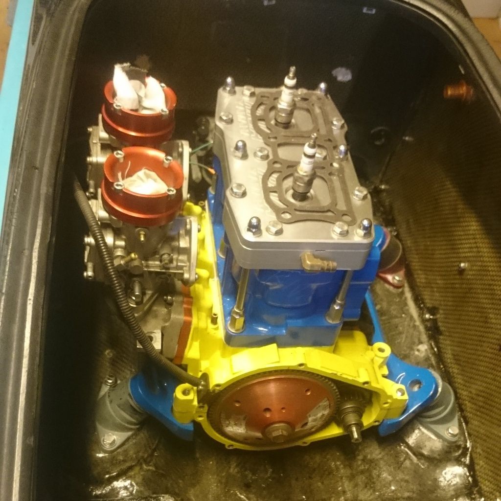 Kyllä on hienoa olla aftermarket runko! Tietää tehneensä kun kaiken joutuu lähes uudelleen miettimään.. Väliakseli ja kone meni paikoilleen kyllä mutkitta ja kone näyttää hyvältä konetilassa.